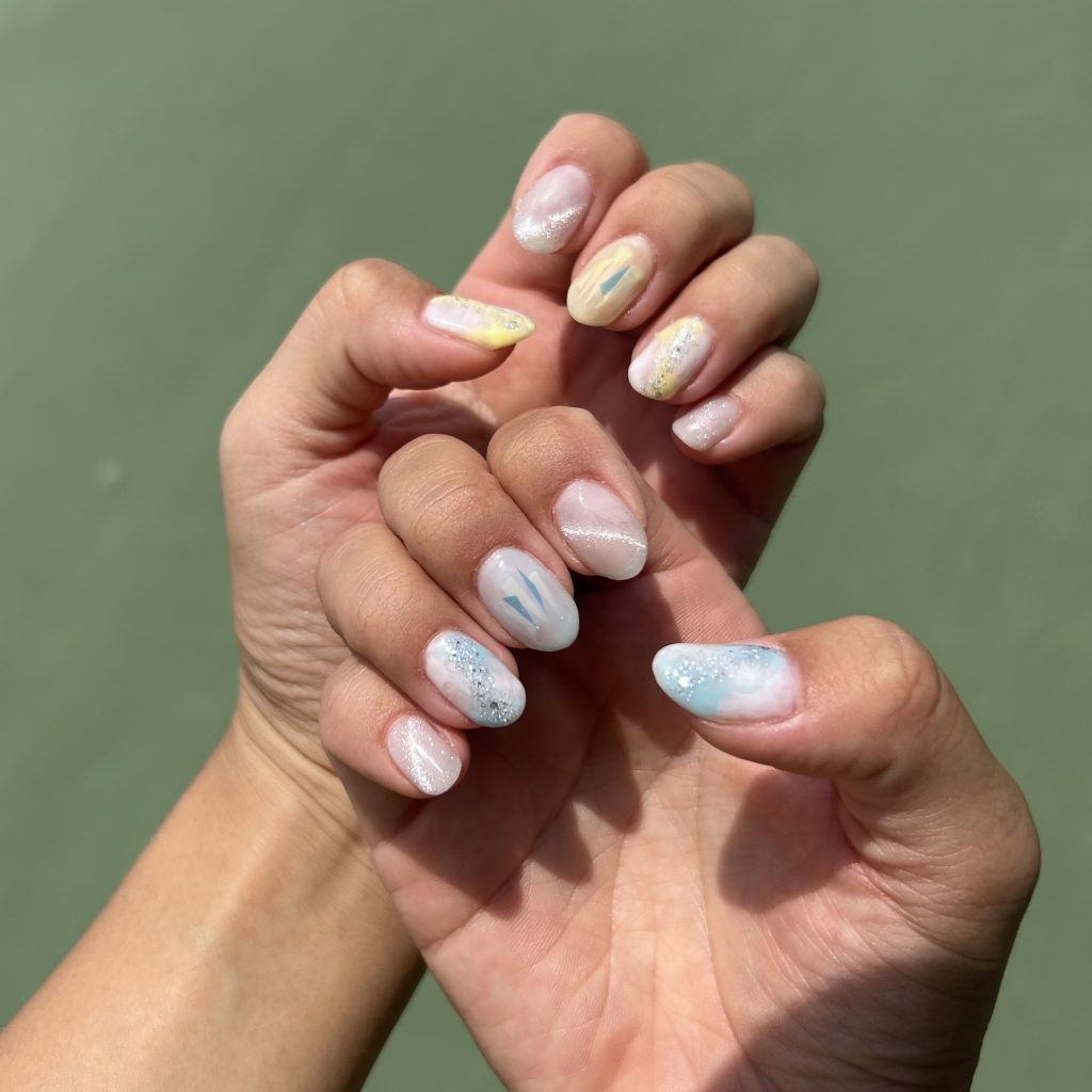 今回は夏っぽく、水色と黄色のネイルにしてみました〜!